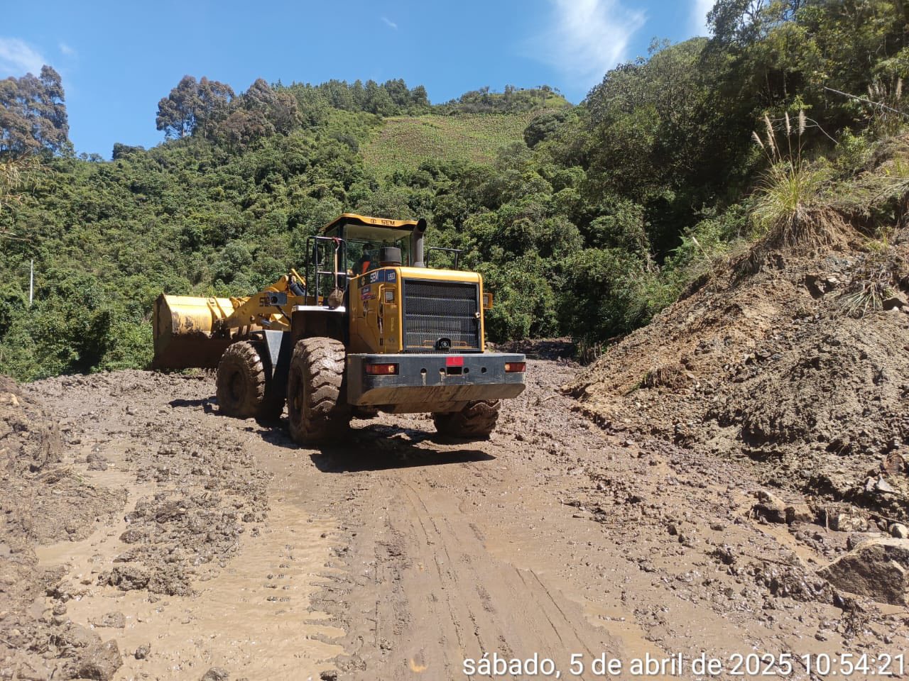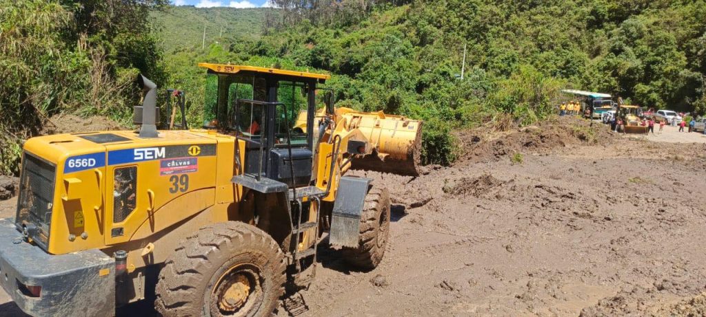 Maquinaria del GADC Calvas se encuentra trabajando en el sector de Moras desde tempranas horas de la mañana de hoy sábado 05 de abril dando el paso controlado a los vehículos que transitan por el sector.